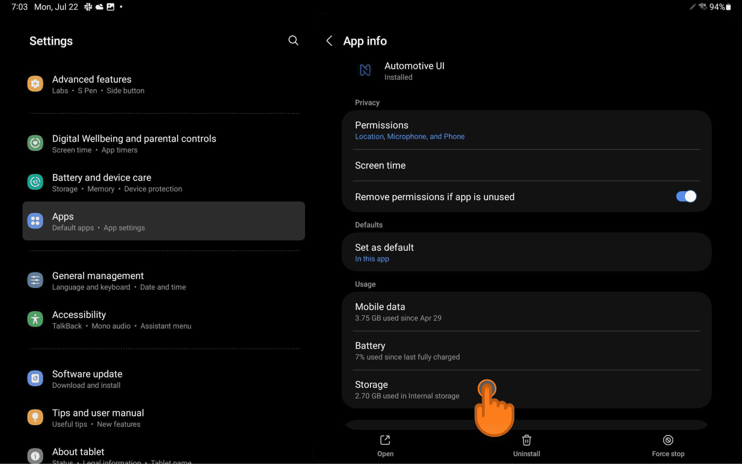 - Click Storage.