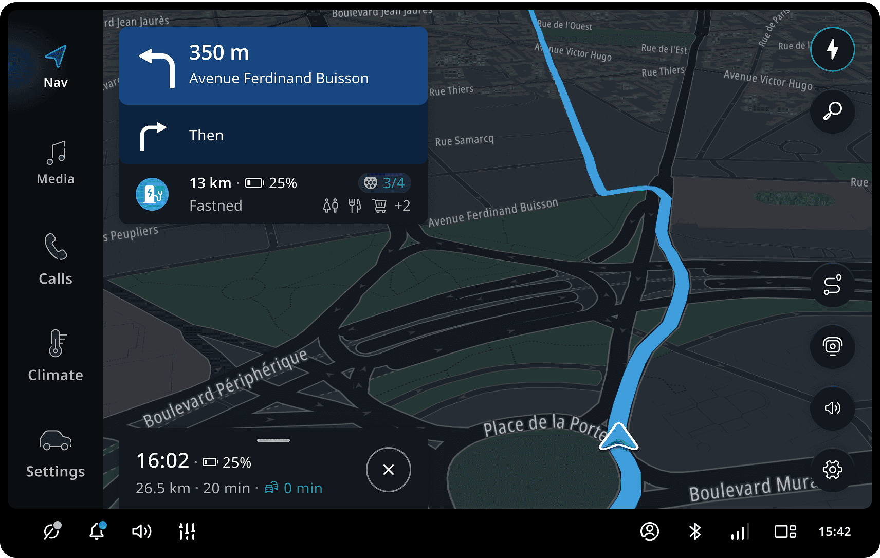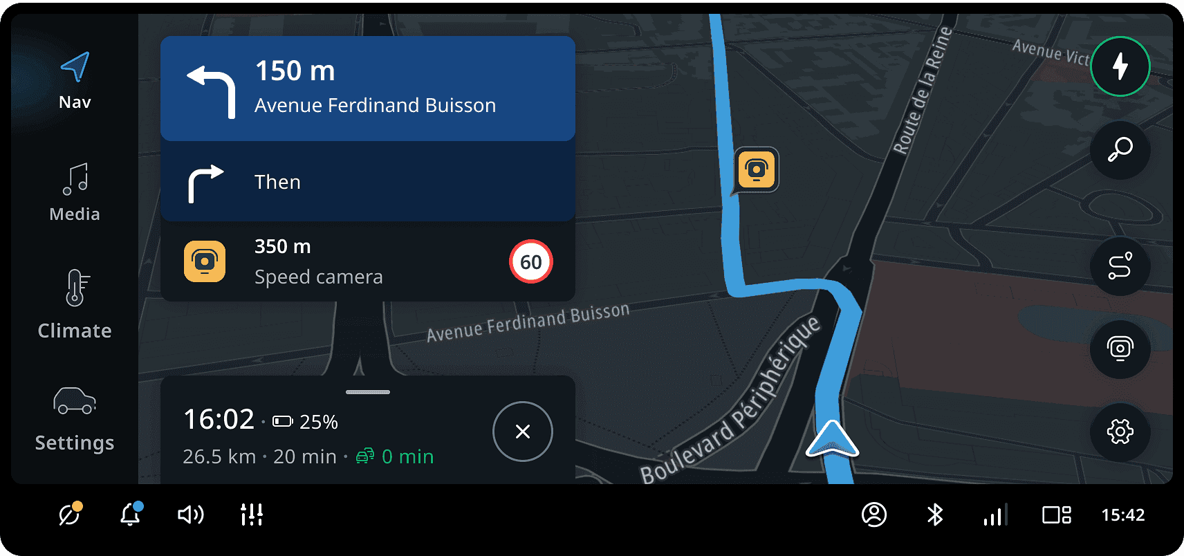 当路线经过高速公路时,导航会提供驾驶员可以在路标上看到的额外信息。 这些信息包括道路编号、驾驶员将前往的城市名称以及高速公路出口编号。