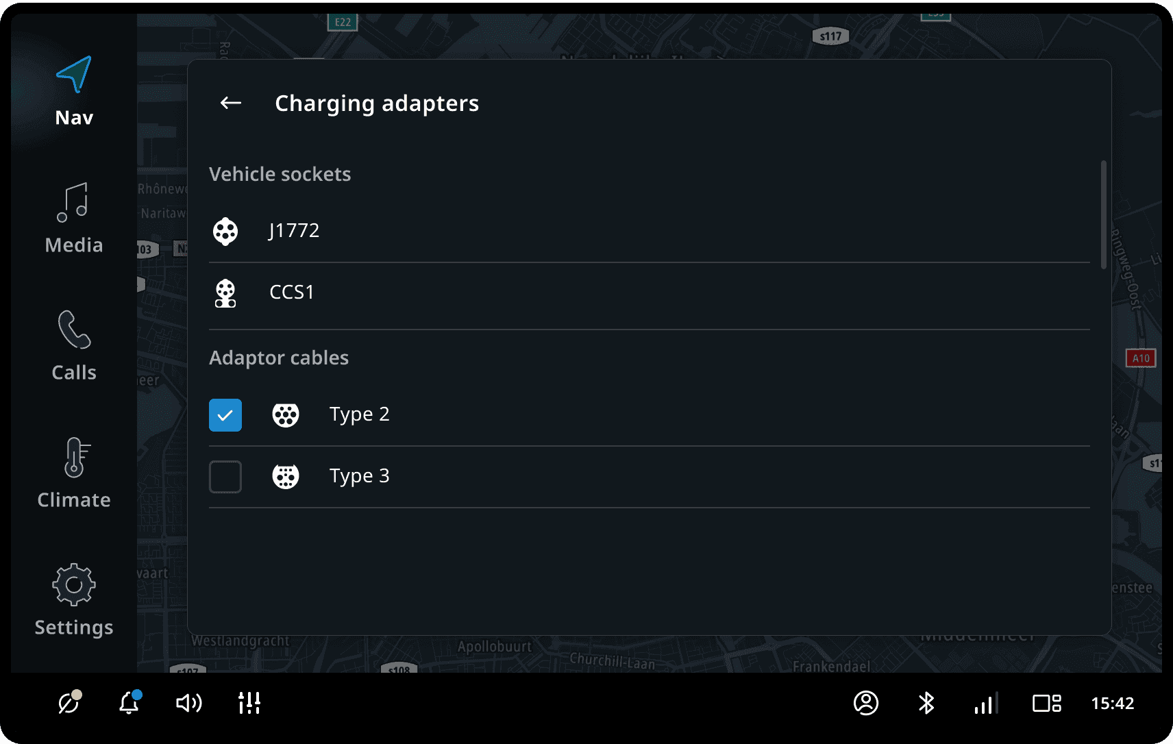 - 设置正确的充电连接器。确保为您的车辆/项目选择了正确的车辆进气口和充电电缆。