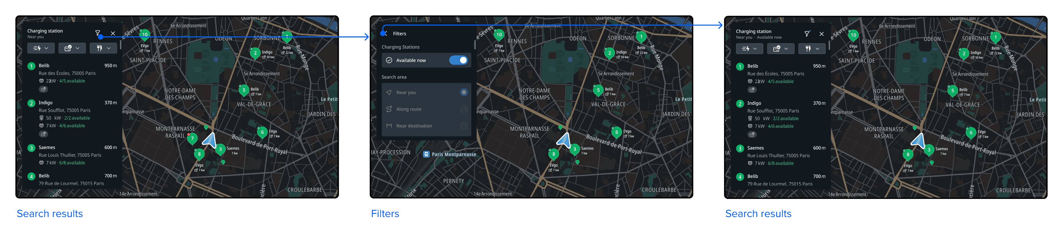 为了帮助用户找到所需的充电站,提供了多个筛选器以细化搜索结果: