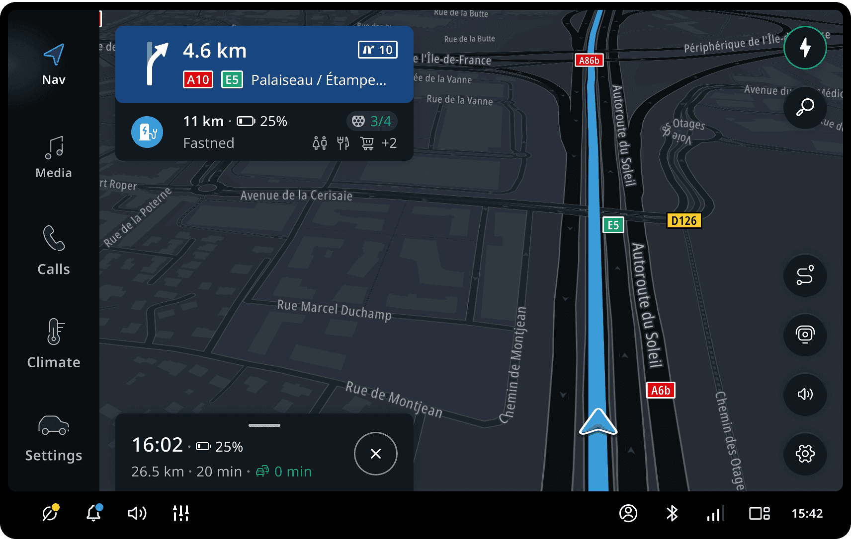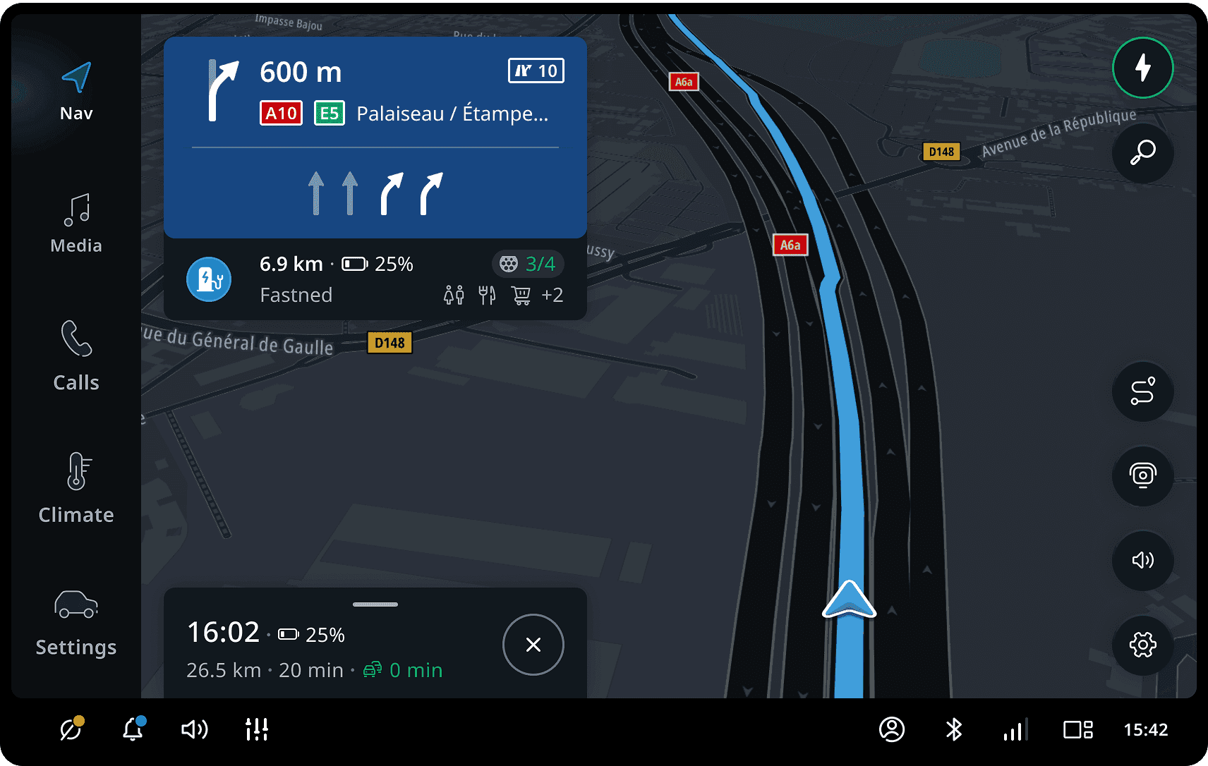 When the route goes through a highway, the guidance provides additional information that the driver can see on the signposts. This information includes road numbers, the city names the driver will be heading towards, and highway exit numbers.