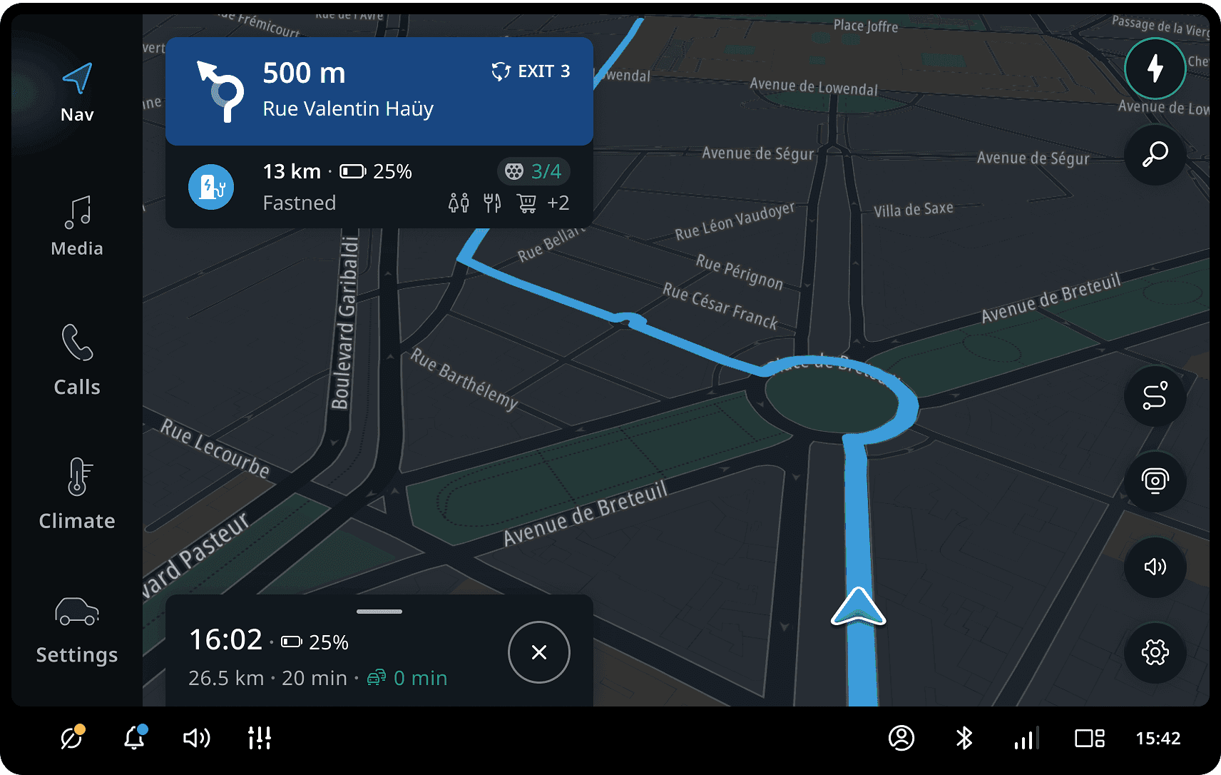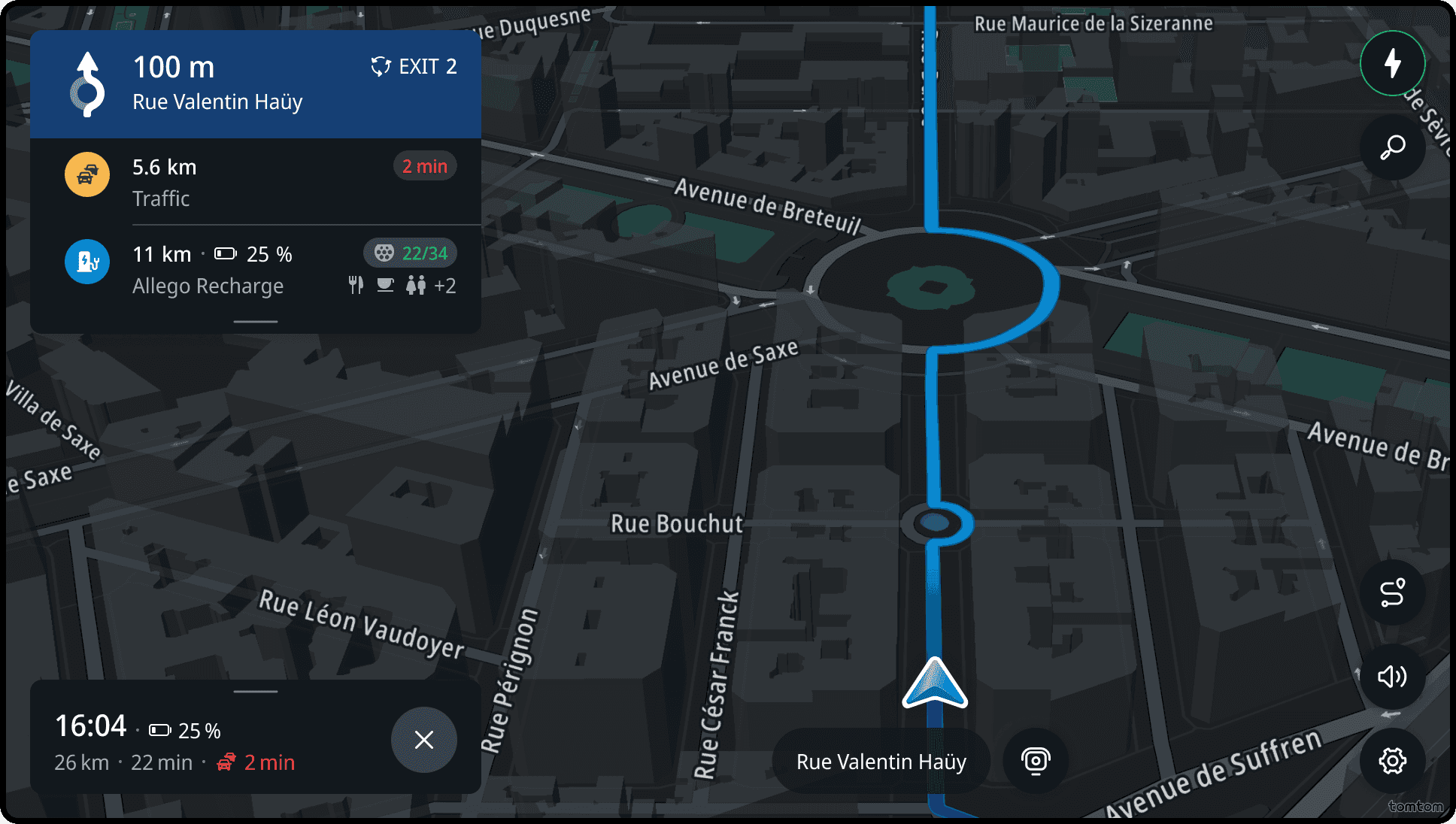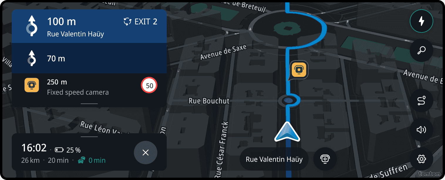 If the route goes through a roundabout, the next instruction icon will include a schematic representation of the exit road.