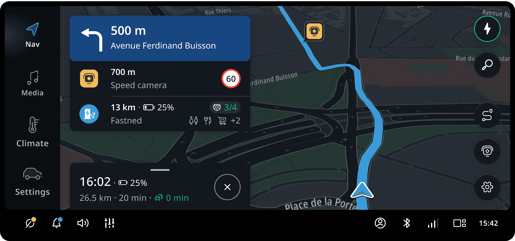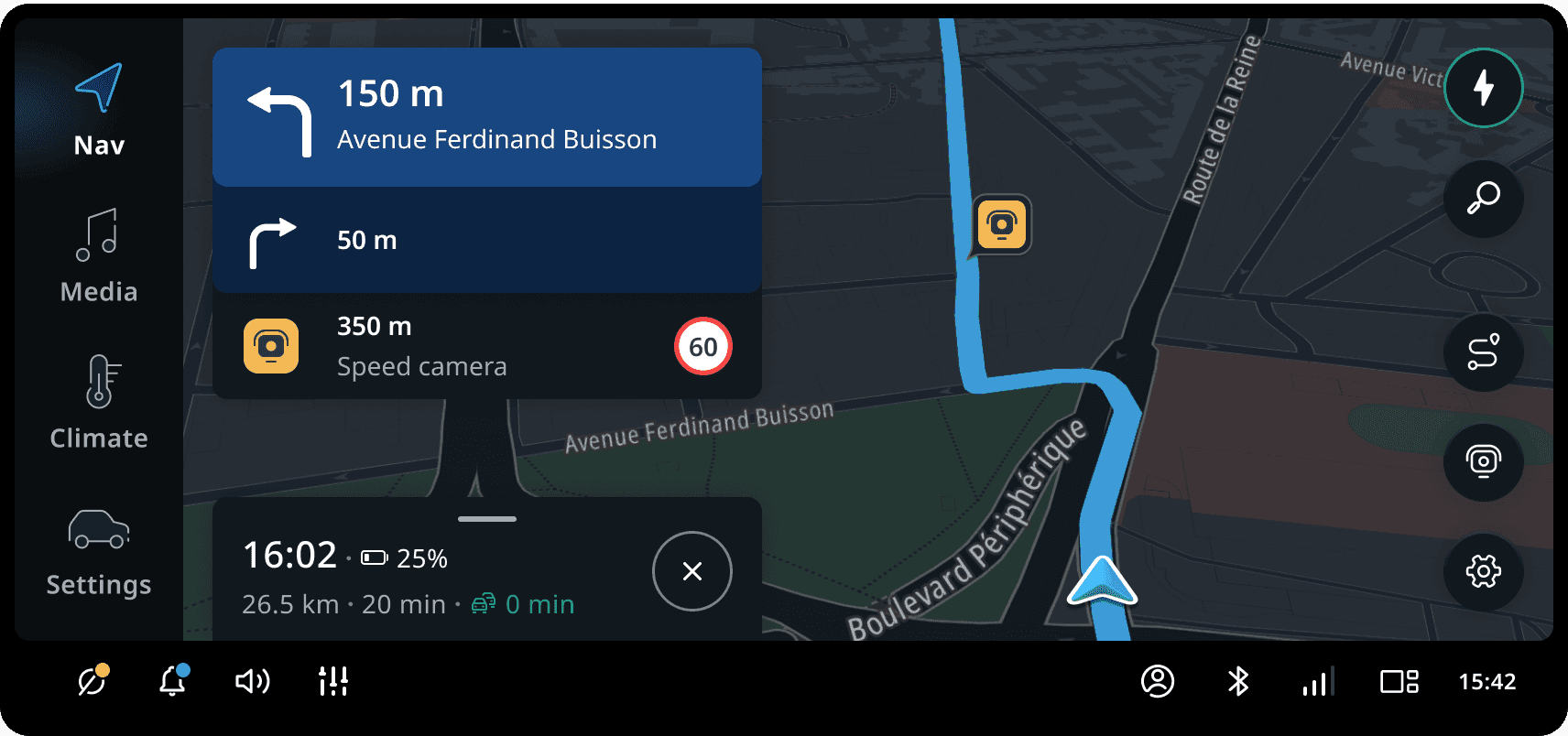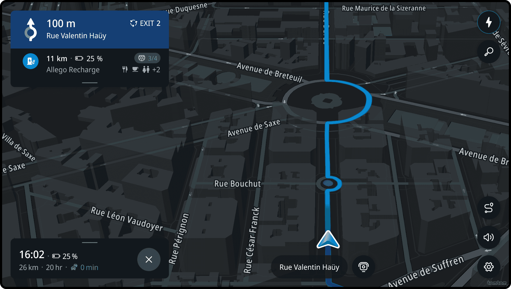 If the route goes through a roundabout, the next instruction icon will include a schematic representation of the exit road.