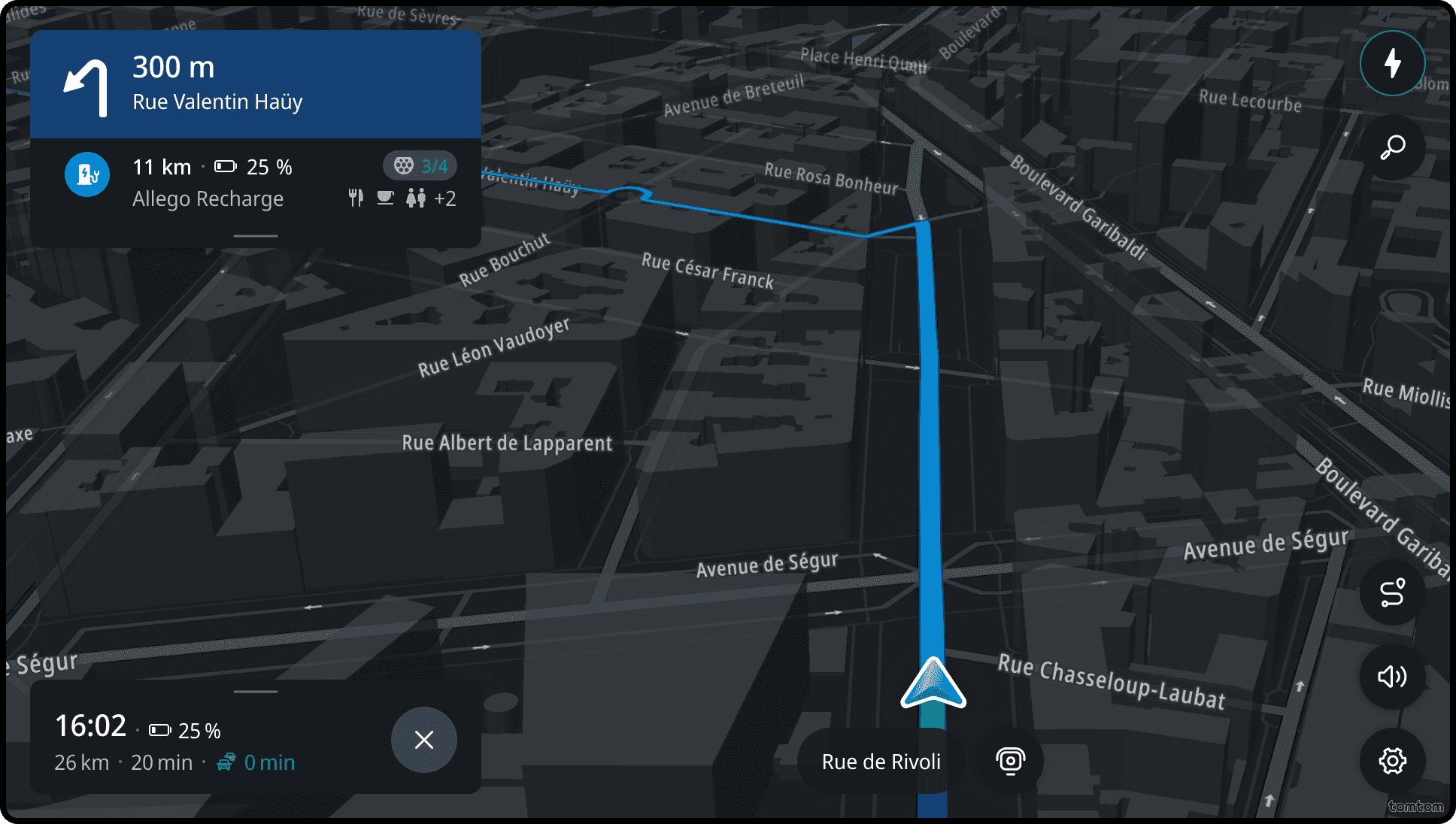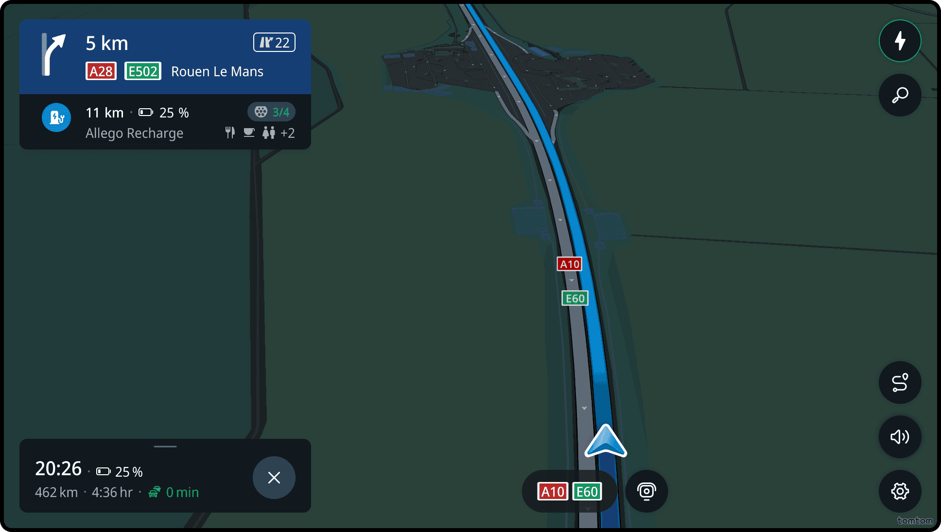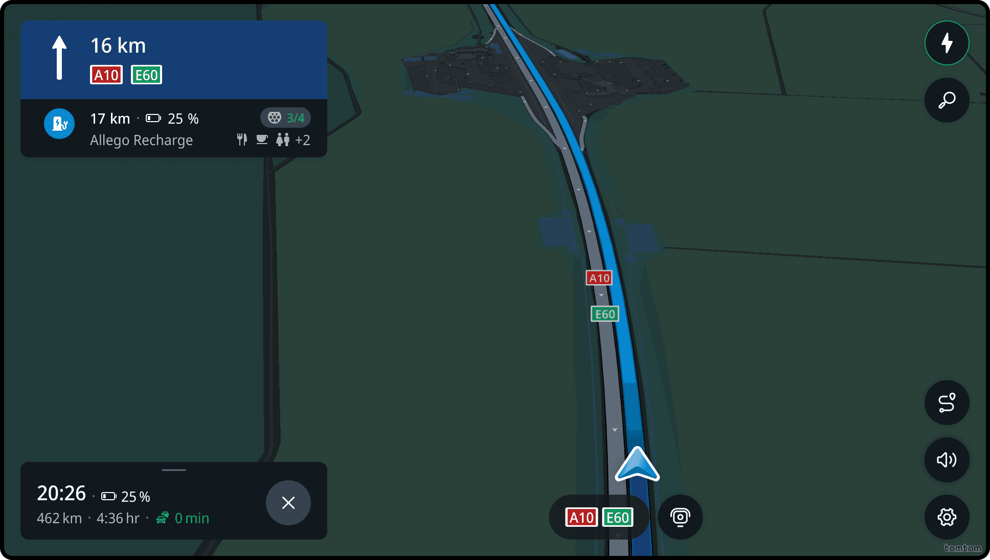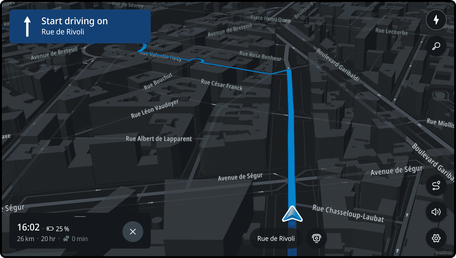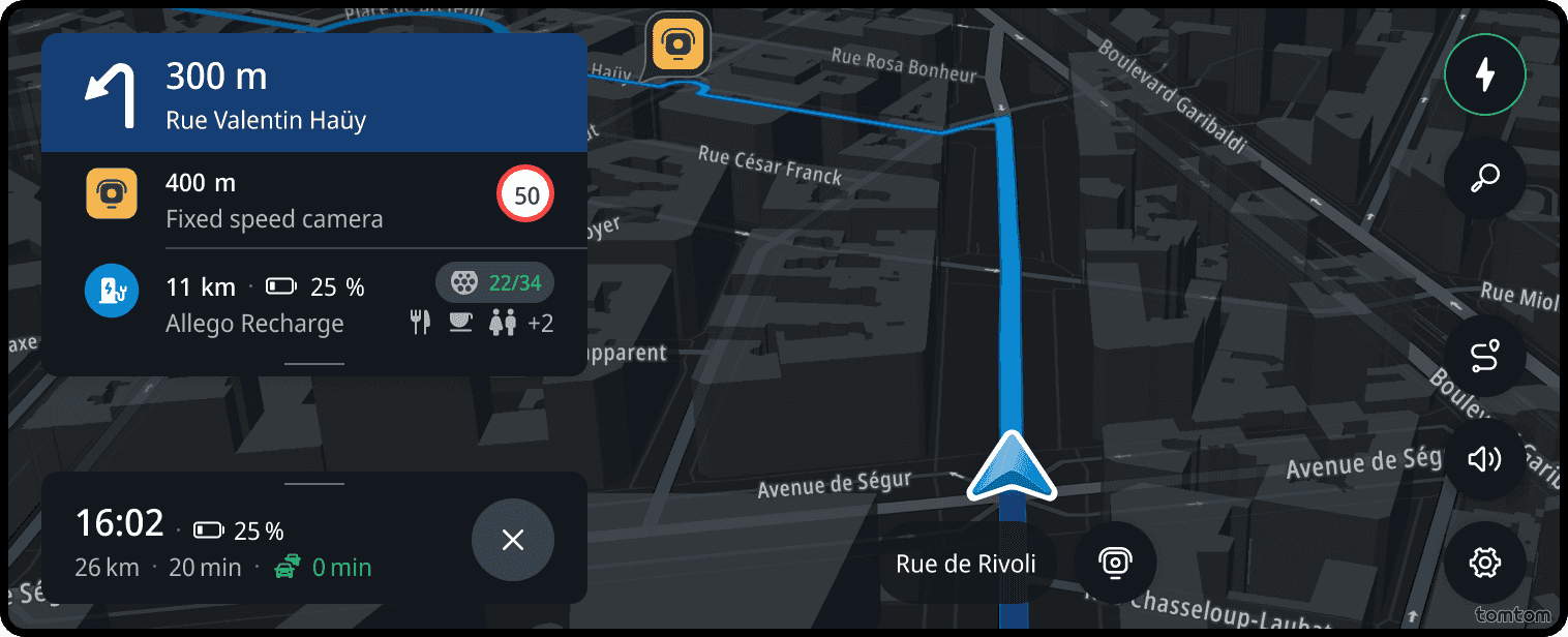 Current street is the information that shows the name of the street and road number where the driver is located. It is also available when driving without a route.