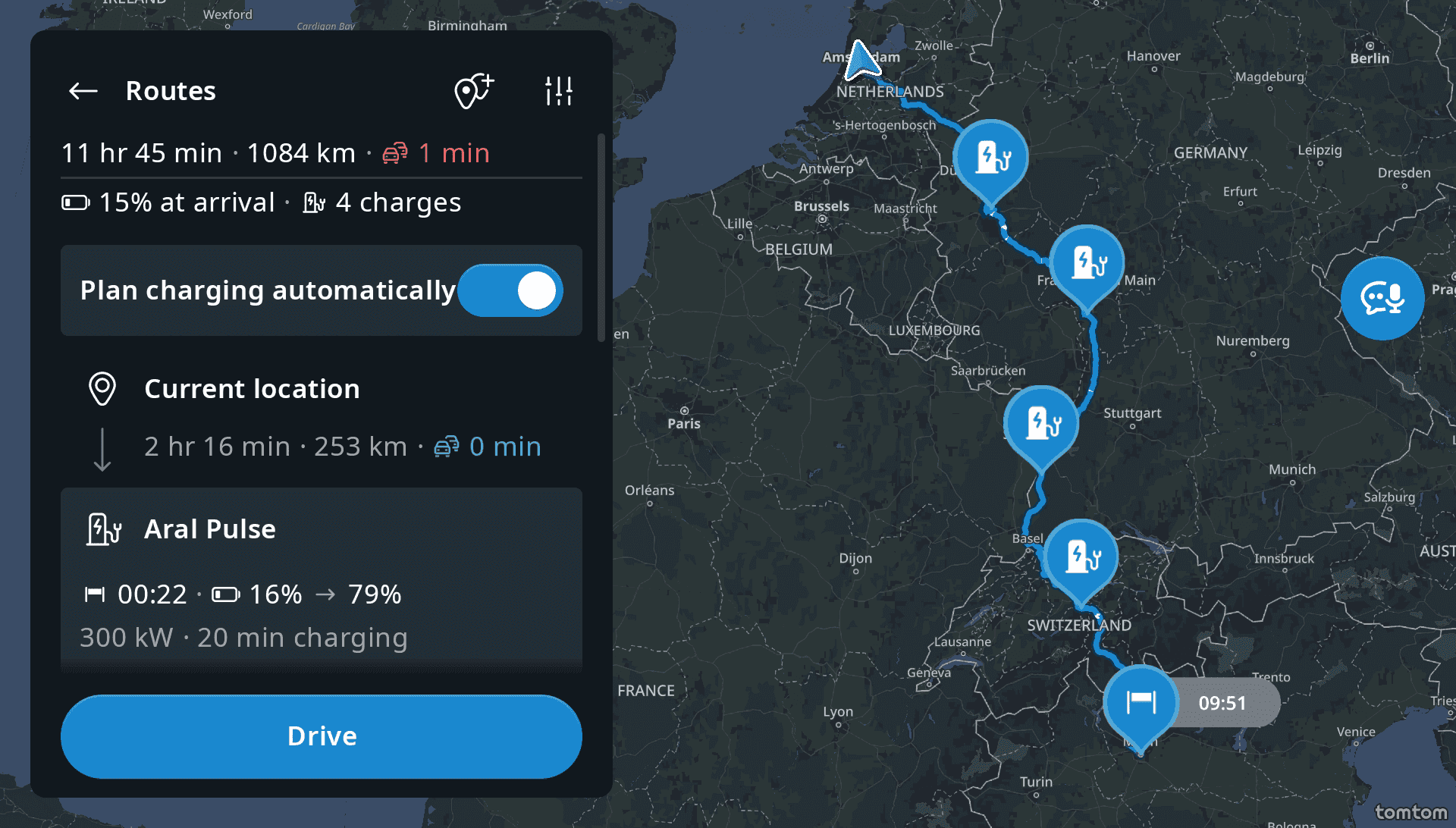 - Consumption model integration – Learn about the essential parameters needed to accurately predict energy consumption along the route, estimate state of charge upon arrival, and display range on the map.