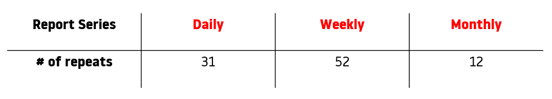 Scheduling a report series also allows for planning schedules in the future. In case the date range is in the future, a new report will start calculating in the queue each day, week, or month once our system has the data for these days.