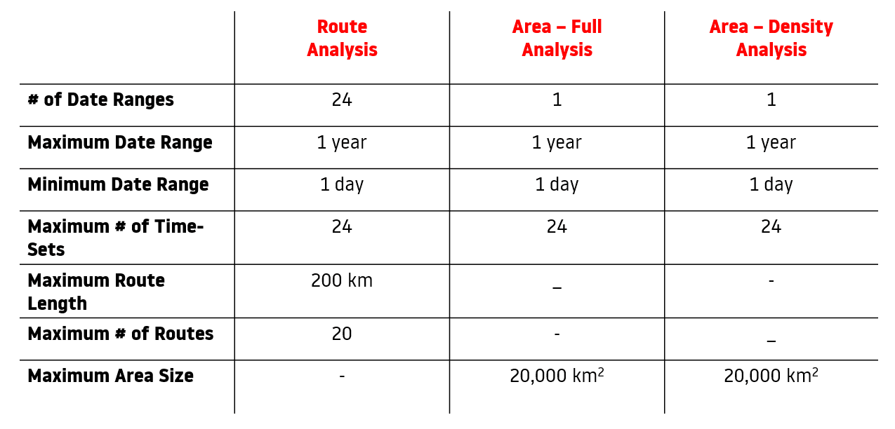 Limits for all Traffic Statistic Analyses