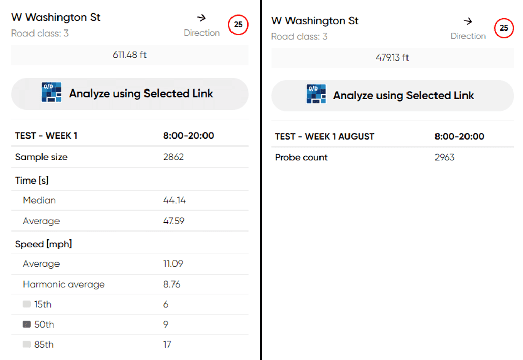 The main difference between the Full Area Analysis and Traffic Density Analysis is that instead of the full report information (speed, travel time, and other average values) you will receive only the vehicle number observed for every segment.