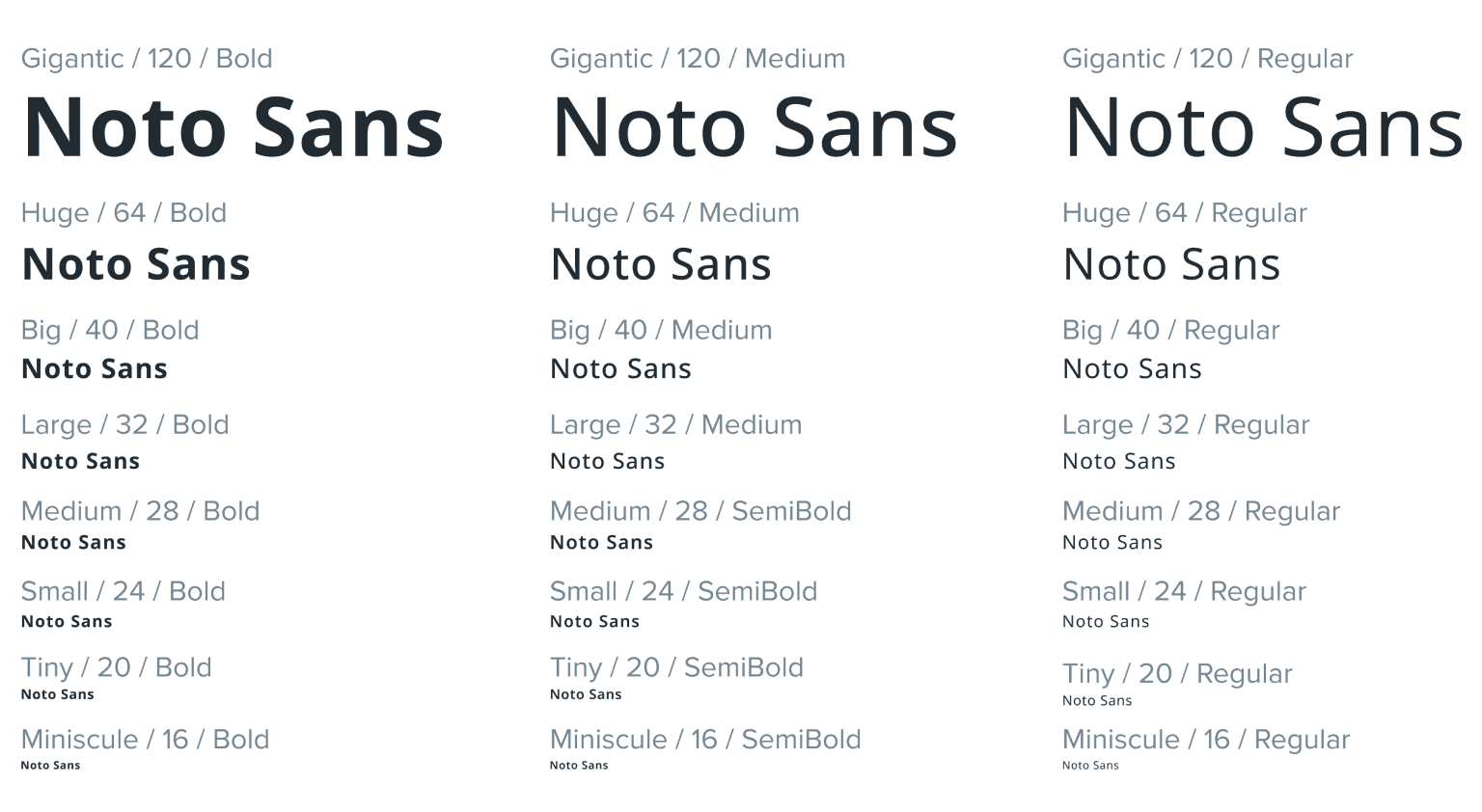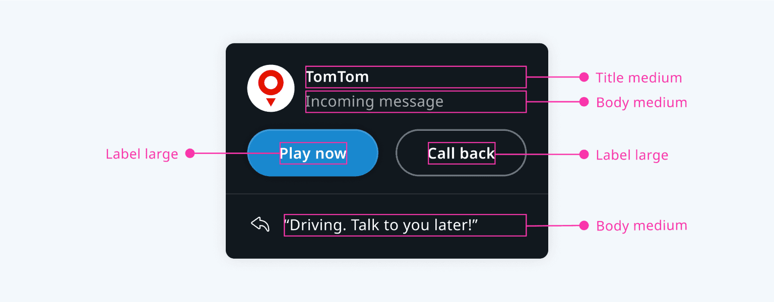 Applying these roles allows simple application in a wide range of use cases. This example uses the Noto Sans typeface for the labels, title, and body: