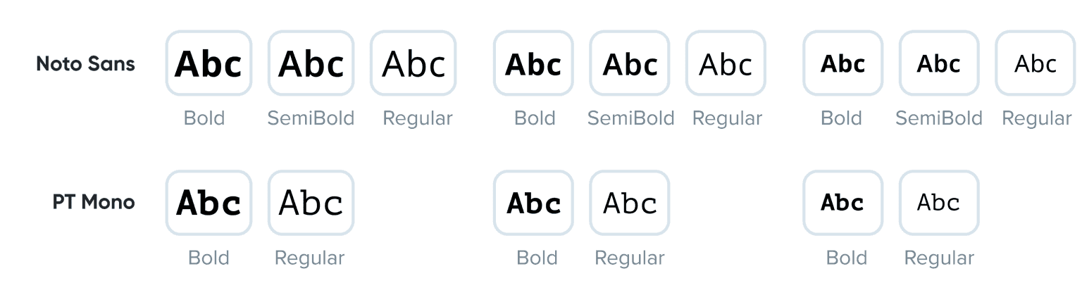 The typography system offers predefined text styles to cover for the most common use cases in the interface. We define 24 styles that are based on a combination of the font size and weight. They are at the very core of the system.