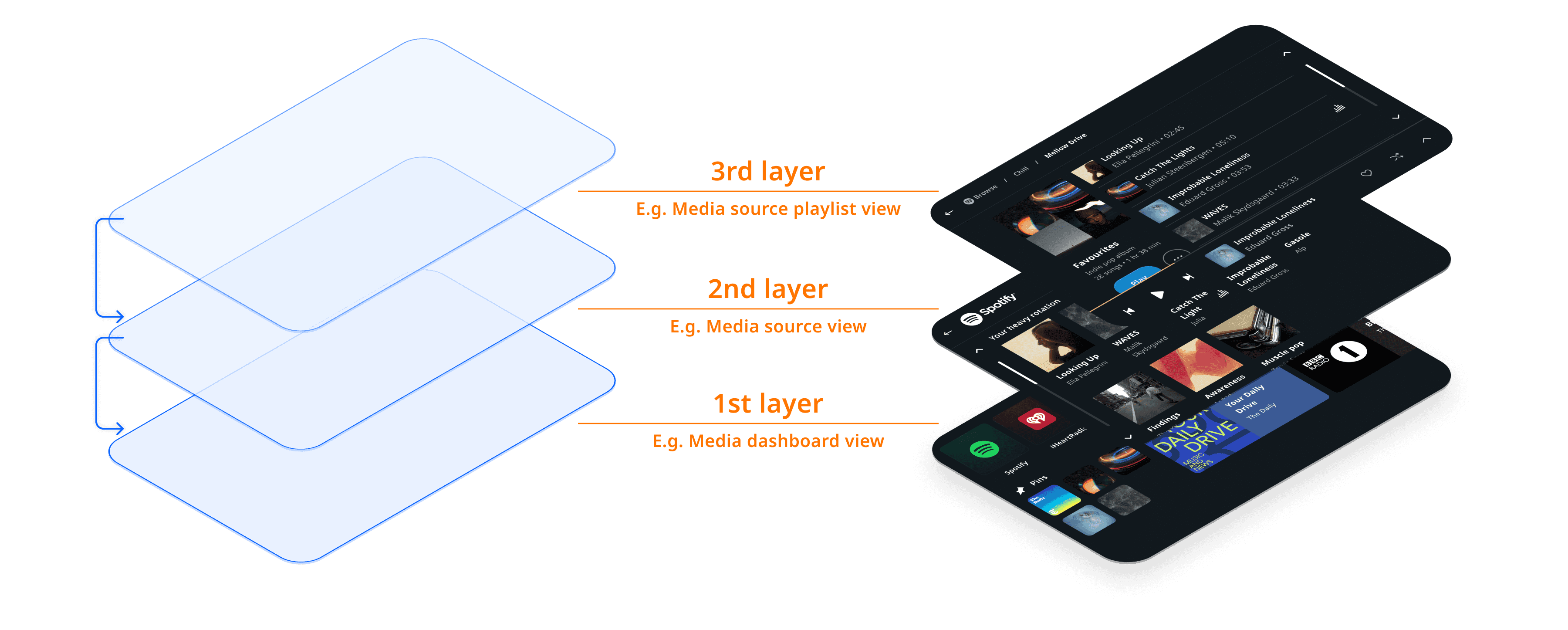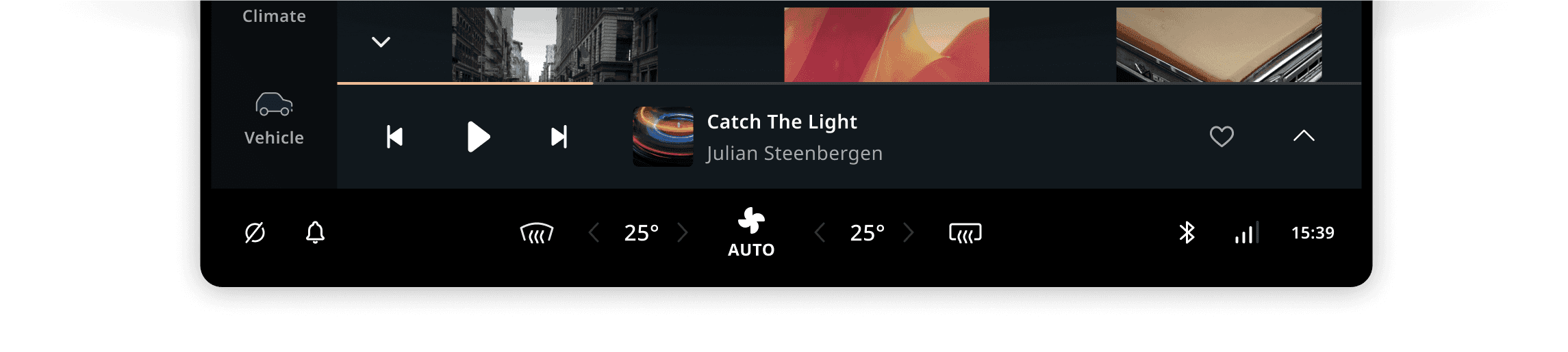 The compact process panel UI template can also be used outside the process panel. For example, the TomTom Digital Cockpit media application uses it to have UI consistency between the Mini player main process panel and the Now playing task process panel.