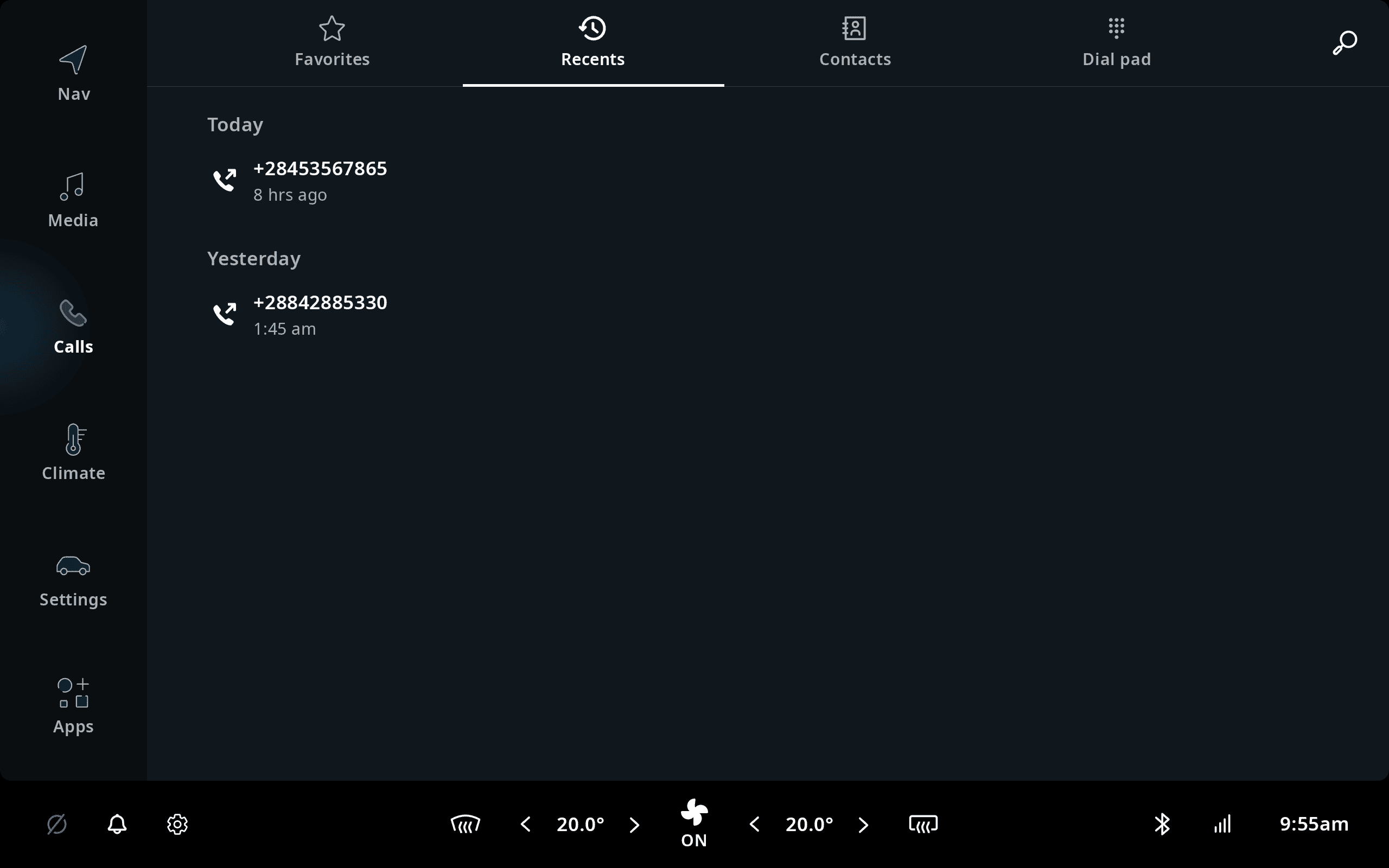 The most recent phonecalls will also sync across from the Bluetooth-connected mobile phone. If the user disconnects the BT connection to the mobile, all synchronized information will be hidden in the UI to ensure privacy.
