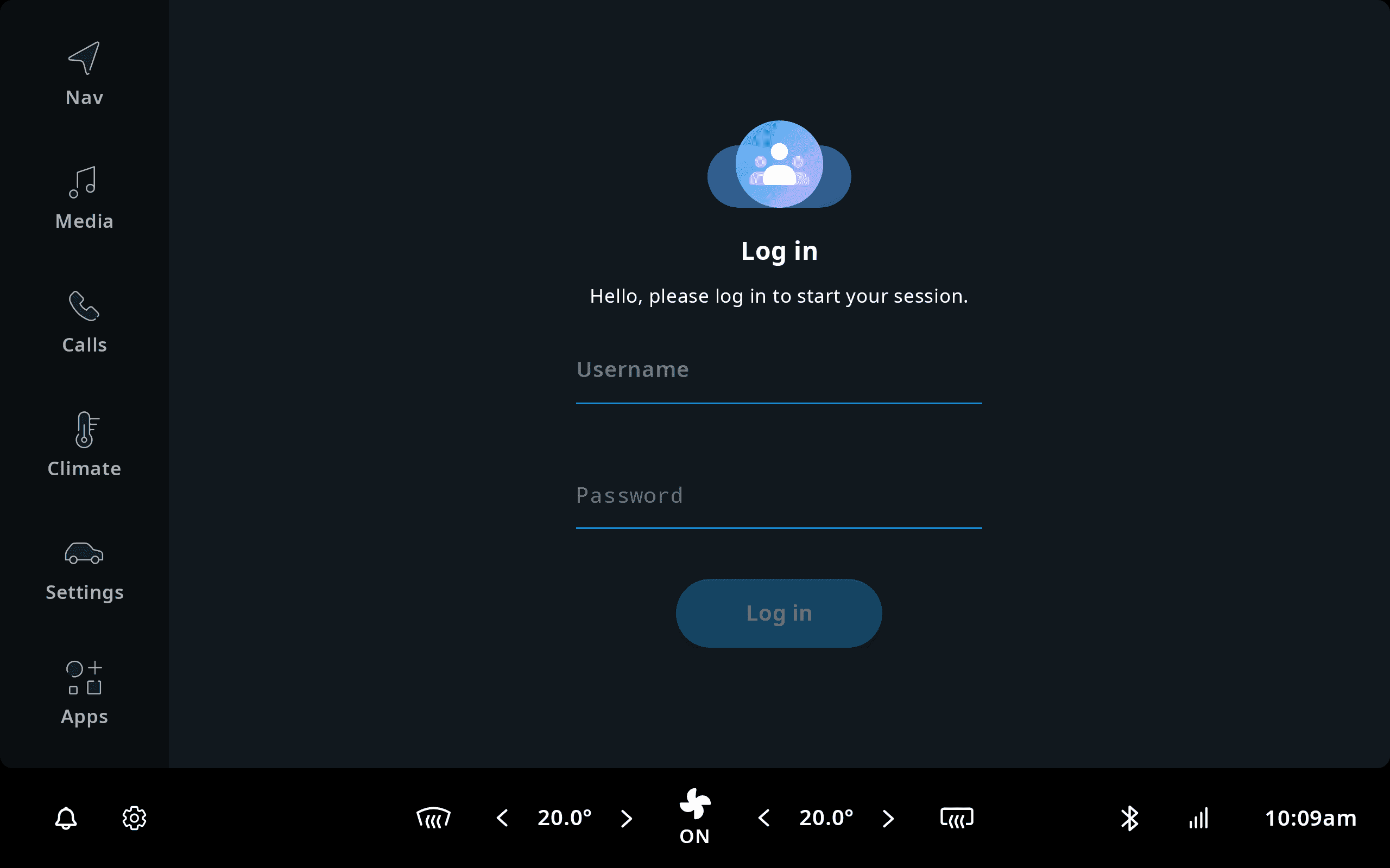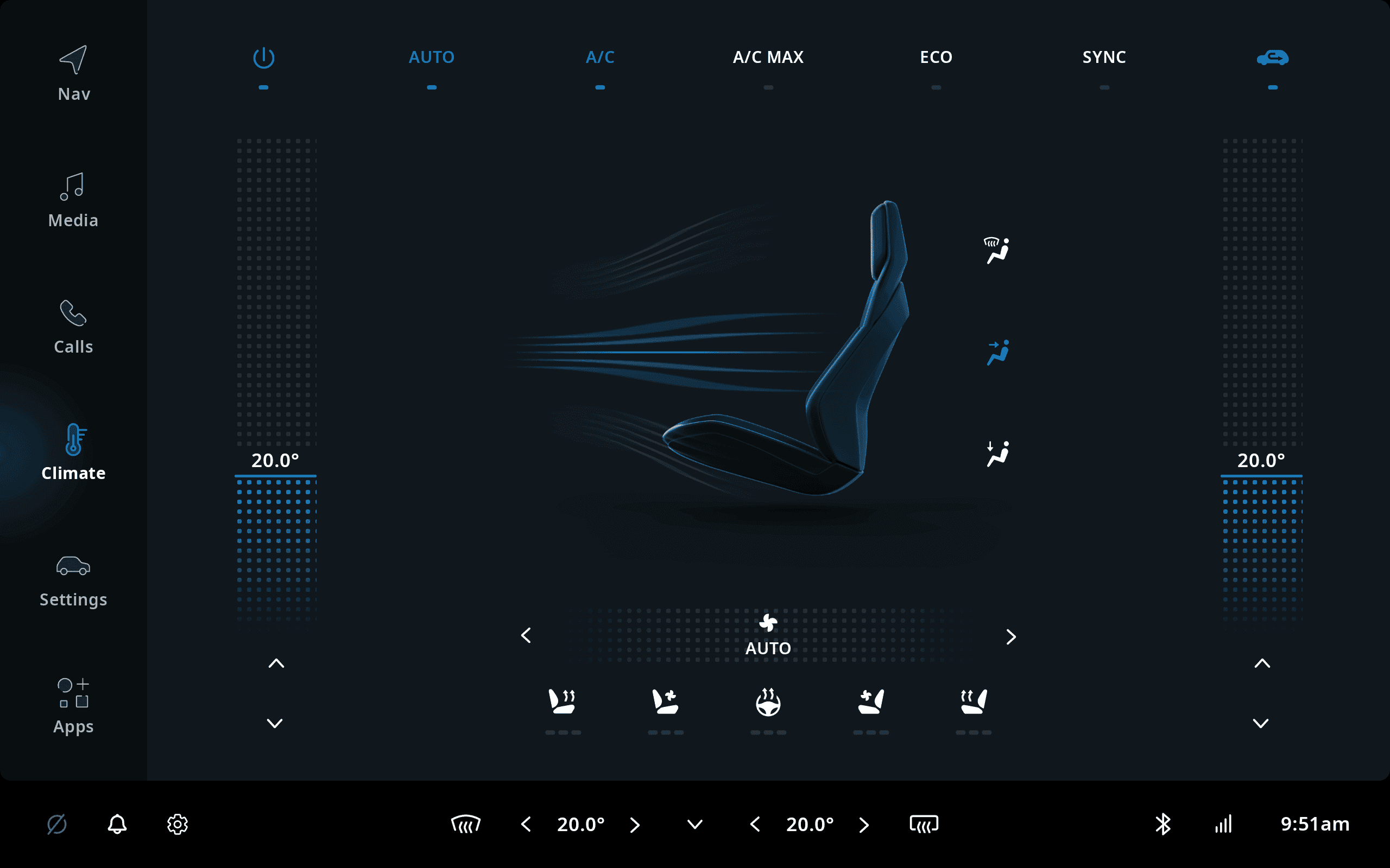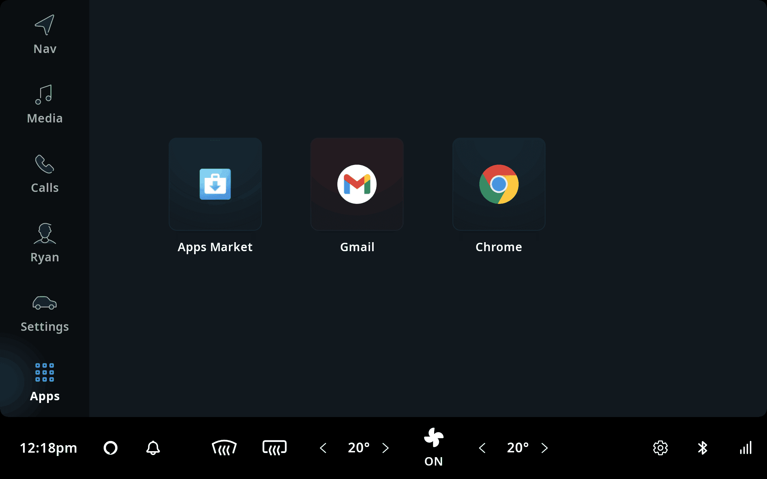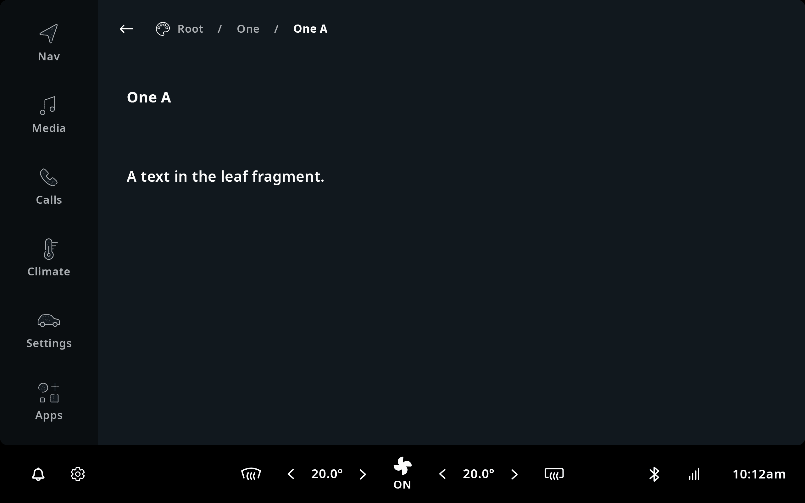 The reference implementation can be launched by touching the climate control area in the status bar at the bottom of the screen, called the Climate Control Center. The most common HVAC functionalities, like changing the temperature, can also be accessed through the Climate Control Center directly, without having to launch the application first.