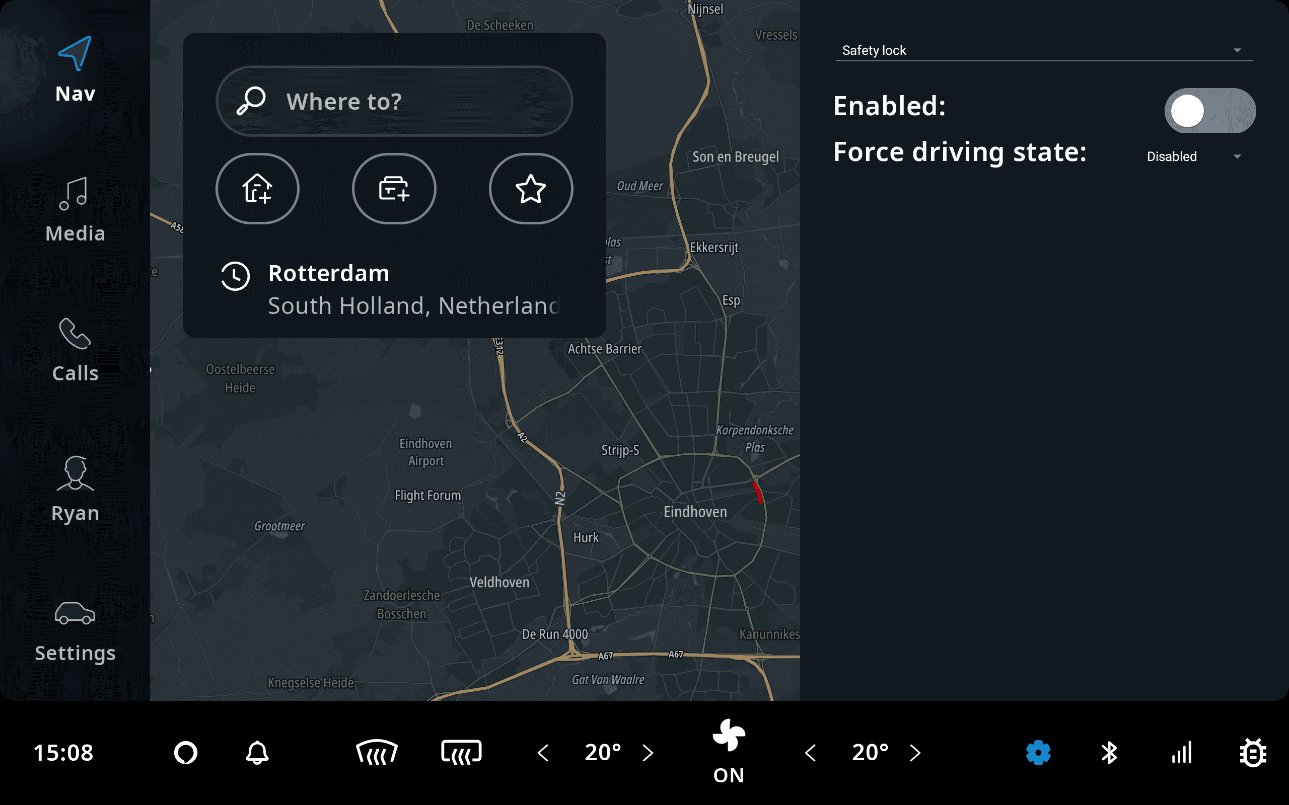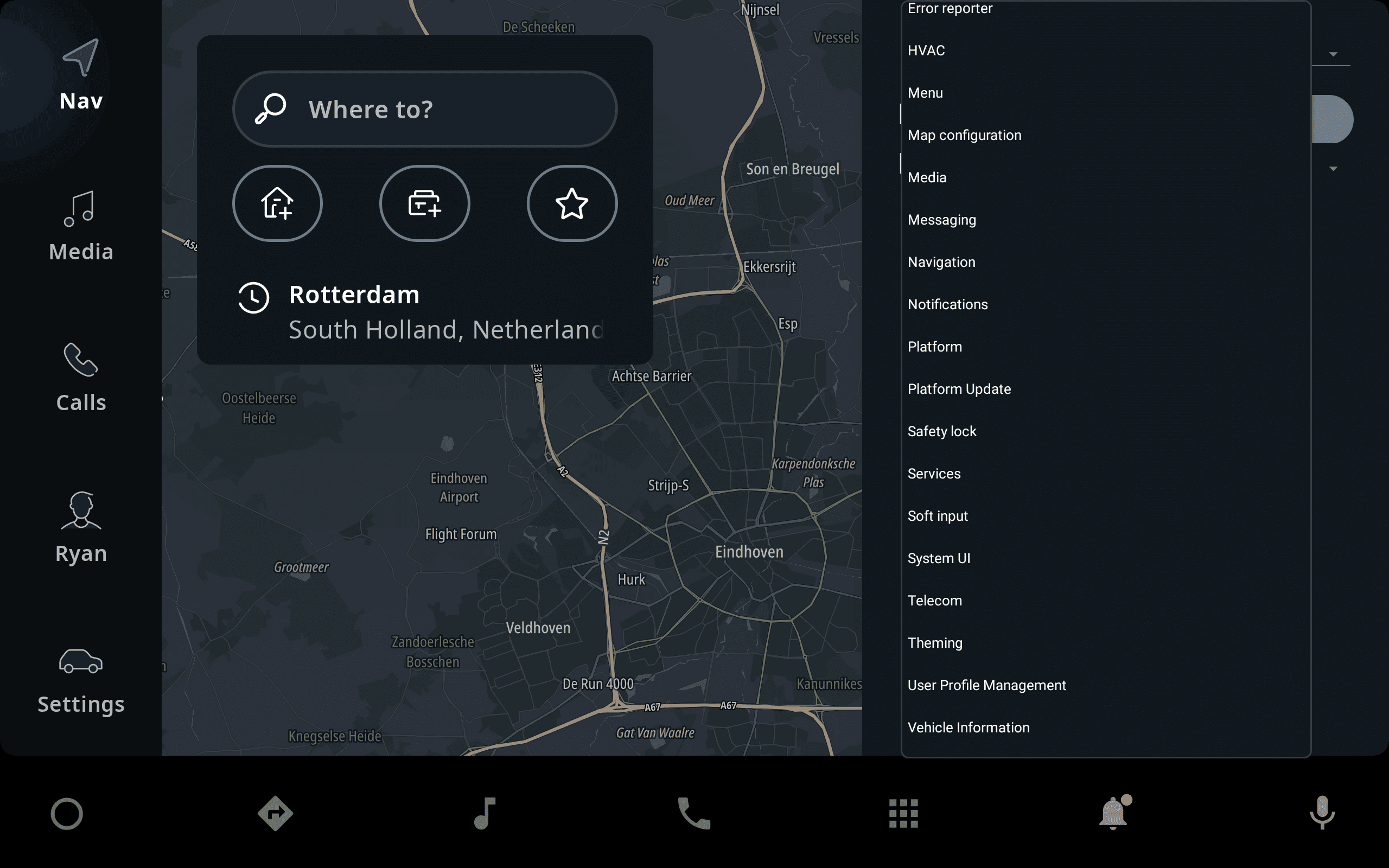 TomTom Digital Cockpit provides a debug menu, giving access to functionality that is not normally available to the end-user. This can be useful for developers to set the product up for testing, or for accessing hidden features that aid development. For example: changing the Safety Lock mode.